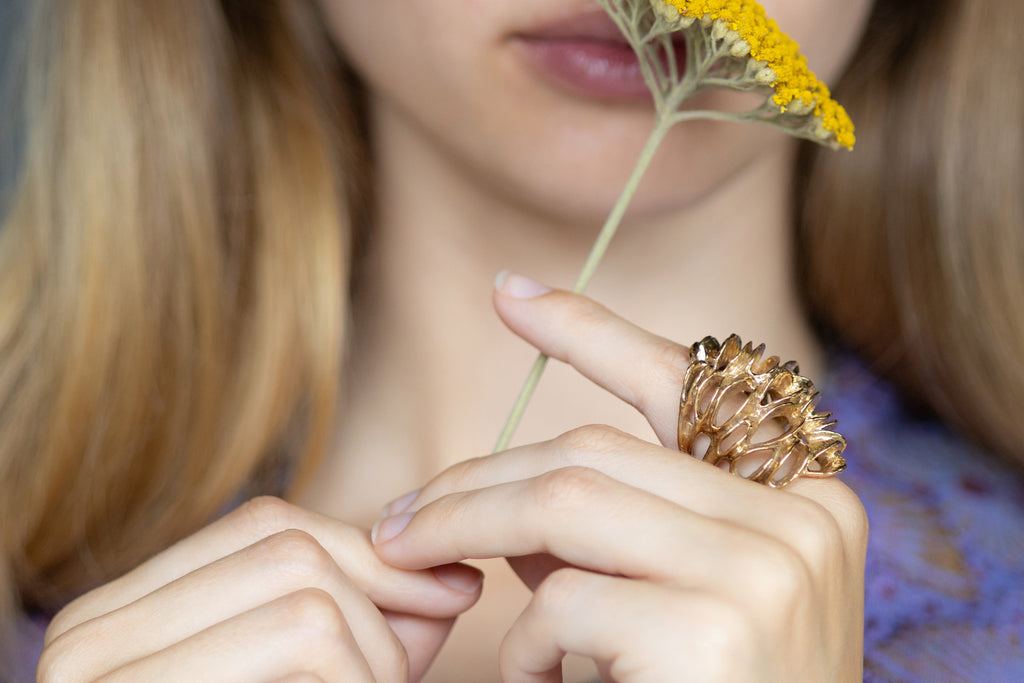 Kirsten Muenster Jewelry's elegant statement pieces blur the line between jewelry, sculpture, and object. Unique handmade designs explore the organic architecture and curiosities of nature.